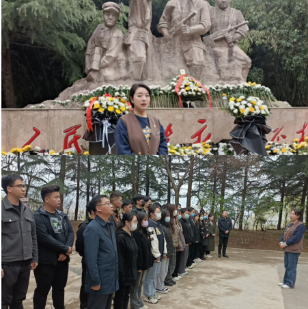 山河无恙、英雄不朽。全体党员在烈士纪念碑前庄重肃立、奏唱国歌、默哀致敬,表达对革命先烈的崇高敬意和无尽哀思。党委书记带领党员同志重温入党誓词,以庄严的宣誓向革命先烈们表达不忘初心、牢记使命、继承遗志、永续奋斗的决心。