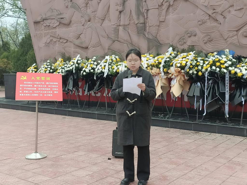 学生党员穆雨晴宣读了《关于清明节纪念缅怀英雄烈士的倡议》,倡议同学们铭记革命先烈功勋,让红色基因、革命薪火代代传承。