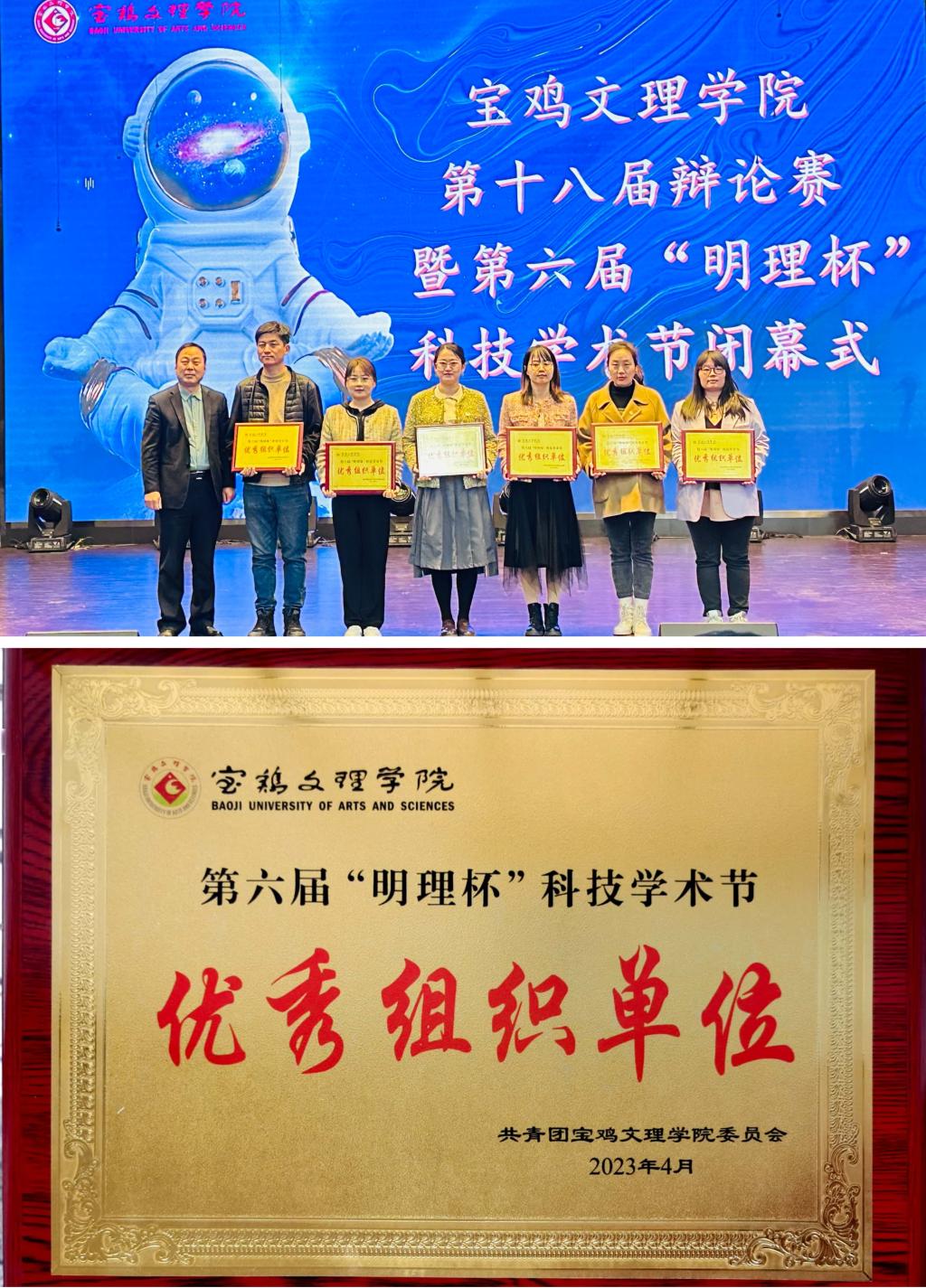 在团总支自评基础上,校团委根据活动开展情况、活动特色、参与影响和校级单项活动参与情况、获奖情况等方面进行赋分,最终我院团总支获宝鸡文理学院第六届“明理杯”科技学术节“优秀组织单位”荣誉称号。