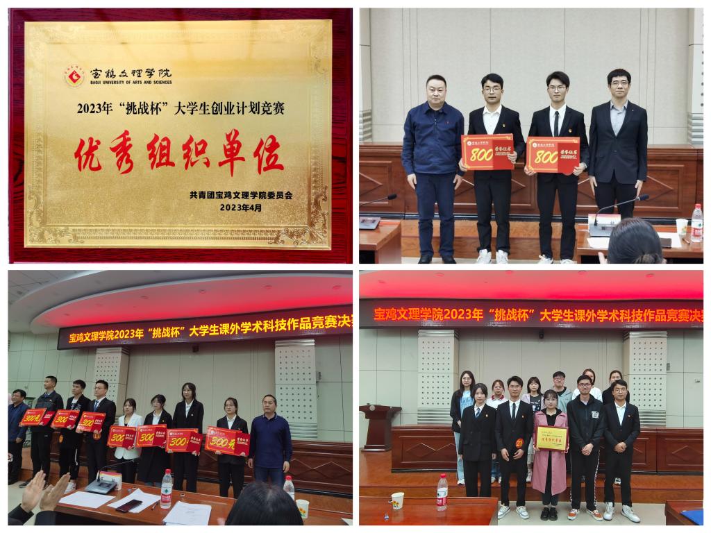 4月12日,由宝鸡文理学院校团委、教务处、招生就业处、研究生院、科研管理处共同主办的宝鸡文理学院2023年“挑战杯”大学生创业计划竞赛在高新校区木铎厅圆满结束。经过初赛和复赛的激烈角逐,我院由李帅、刘俊、张桦、张小龙、白海宾、沙俊、张麦、马文卓同学共同完成的项目《智慧之舟-5G互联水域感知型无人清洁船》和由张桦、李帅、张小龙、都娜娜、张楚珺、吴雨晗、白海宾、彭哲同学共同完成的项目《沙漠魔方——基于人工智能扎草固沙环境勘测多功能生态机器人》荣获一等奖;由王全鑫、白月、李鑫、刘鼎塬、杨霖浠、郑跃武同学共同完成的项目《基于环境感知的节能环保消毒机器人》荣获三等奖。我院被授予“优秀组织单位”。