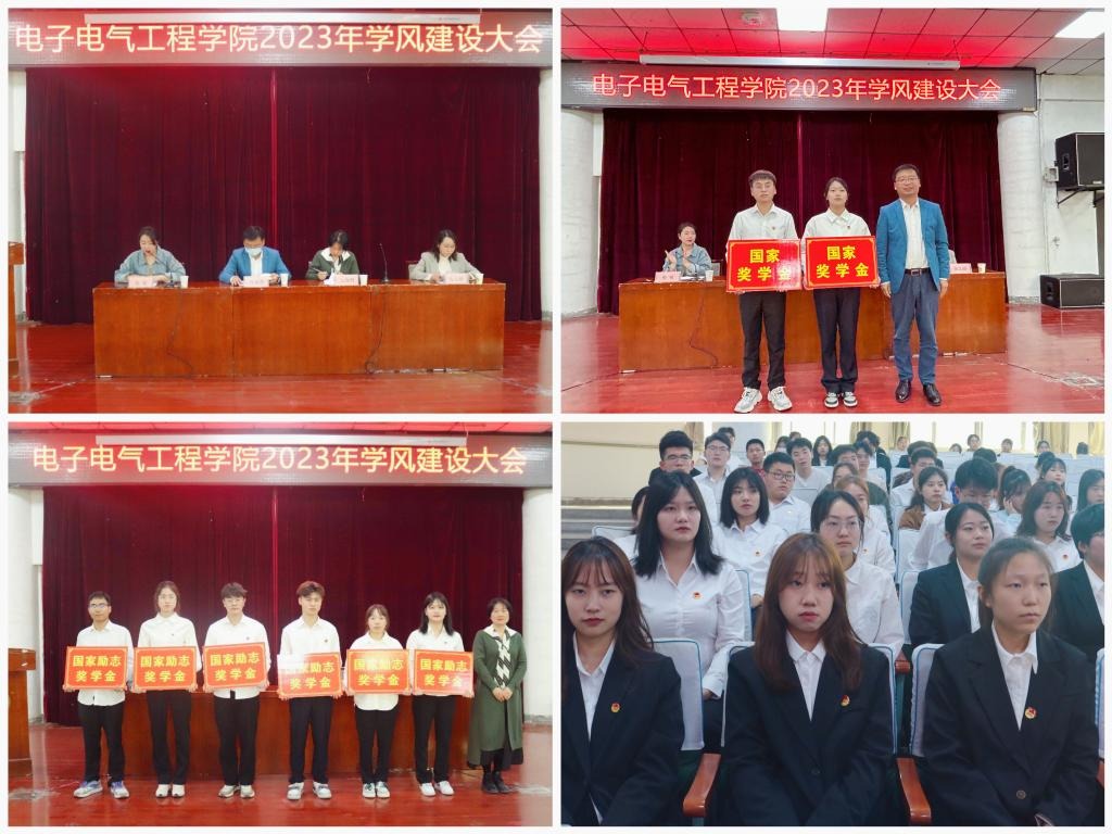 会上,主持工作副院长王晓利作学风建设主题报告,她传达了学校本科教育高质量发展推进会暨审核评估工作动员会的会议精神,结合学院实际,总结了2022年度学风建设情况,评估了学院学风建设现状,分析了存在问题,就进一步加强学风建设提出了要求。副院长张文娟宣读表彰名单,与会领导老师为获得2021-2022学年“先进班集体”“青年大学习先进团支部”“三星级宿舍”、国家奖学金、国家励志奖学金、学校一等奖学金、二等奖学金、“三好学生”“优秀学生干部”“优秀志愿者”“青年大学习先进个人”“大学生暑期社会实践活动先进个人”、电子电气工程学院“学生科技之星”“学生科技创新先进个人”“优秀信息员”等获奖集体和个人颁发奖牌和荣誉证书。学生代表董甜瑞从“学会学习”“学会做事”“学会做人”三方面谈对学风建设的理解,并向全院学生发出倡议书。