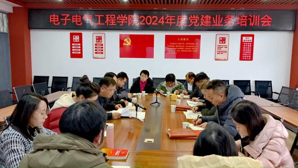 为进一步增强各党支部书记、委员工作综合素质,明确工作责任,强化履职能力,推进基层党组织标准化、规范化建设。12月11日下午,电子电气工程学院党委召开2024年度党建业务工作培训会。学院党委委员、各党支部书记、支部委员参加会议,会议由党委书记主持。