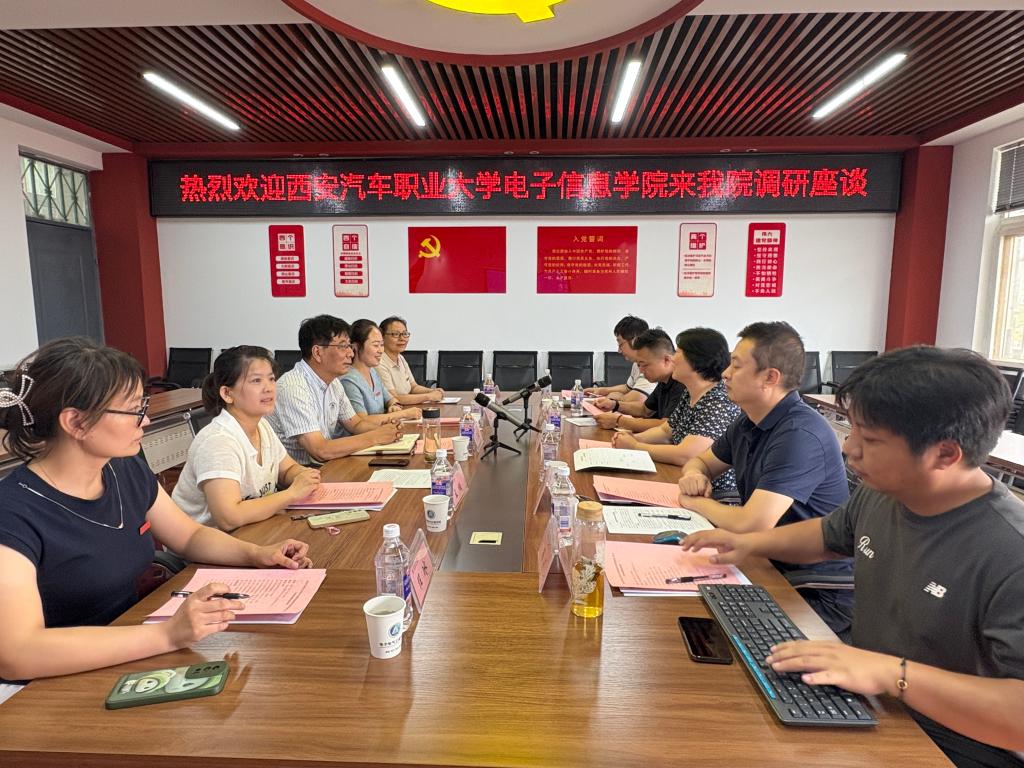 王晓利对吴宏岐院长一行来访表示热烈欢迎,介绍了学院基本情况以及最新版培养方案的修订情况,重点介绍了电子信息工程和通信工程两个本科专业建设的相关工作。吴宏岐对学院的热情接待表示感谢,对学院的综合实力表示肯定,并介绍了西安汽车职业大学电子信息学院的基本情况。接着双方就新版本科人才培养方案修订、实习实践、试卷以及毕业设计等内容进行深入研讨,方元和李明分享了专业课程体系设置与实践环节特色,冯元介绍了实验室的安全管理与制度编制;最后吴宏岐一行参观了资料室以及电子信息工程和通信工程专业实验室。