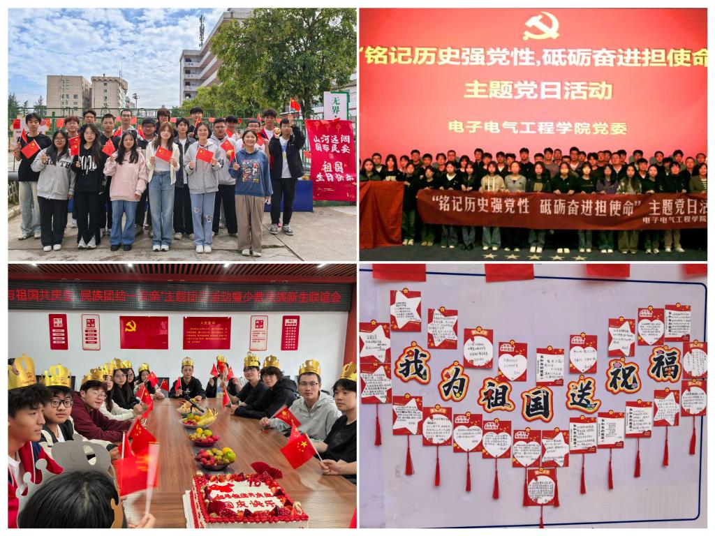 在庆祝中华人民共和国成立76周年之际,电子电气工程学院深入贯彻《新时代爱国主义教育实施纲要》,坚持分层分类、由点及面,策划开展内容丰富、形式多样的爱国主义教育活动,激励师生厚植爱国情、砥砺强国志、实践报国行。