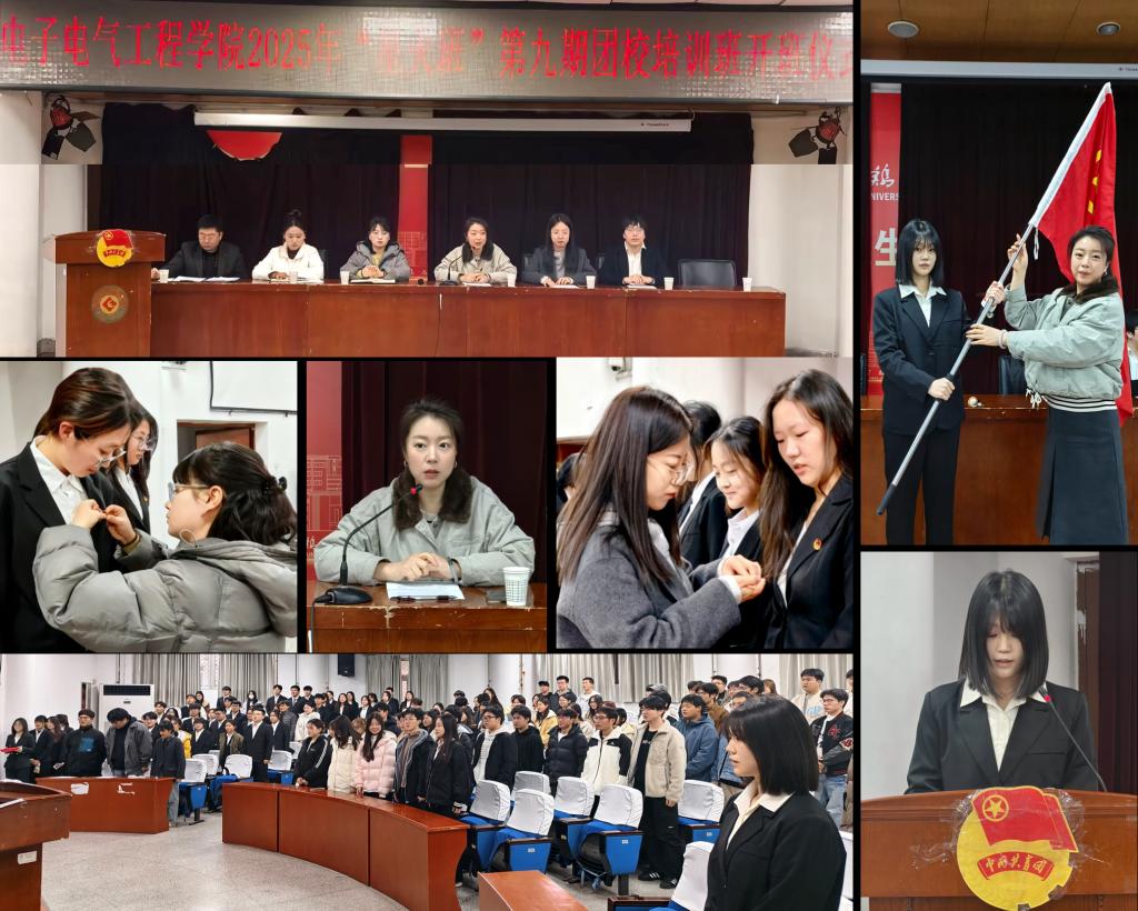 开班仪式在庄严的团歌中拉开帷幕。耿硕璘宣读了学院团委《关于同意成立电子电气工程学院第九期星火班临时团支部》的批复,第九期“星火班”临时团支部书记孙艺喧宣读了培训分组名单。参会老师为第九期星火班授旗,并为学员代表佩戴了星火徽。
